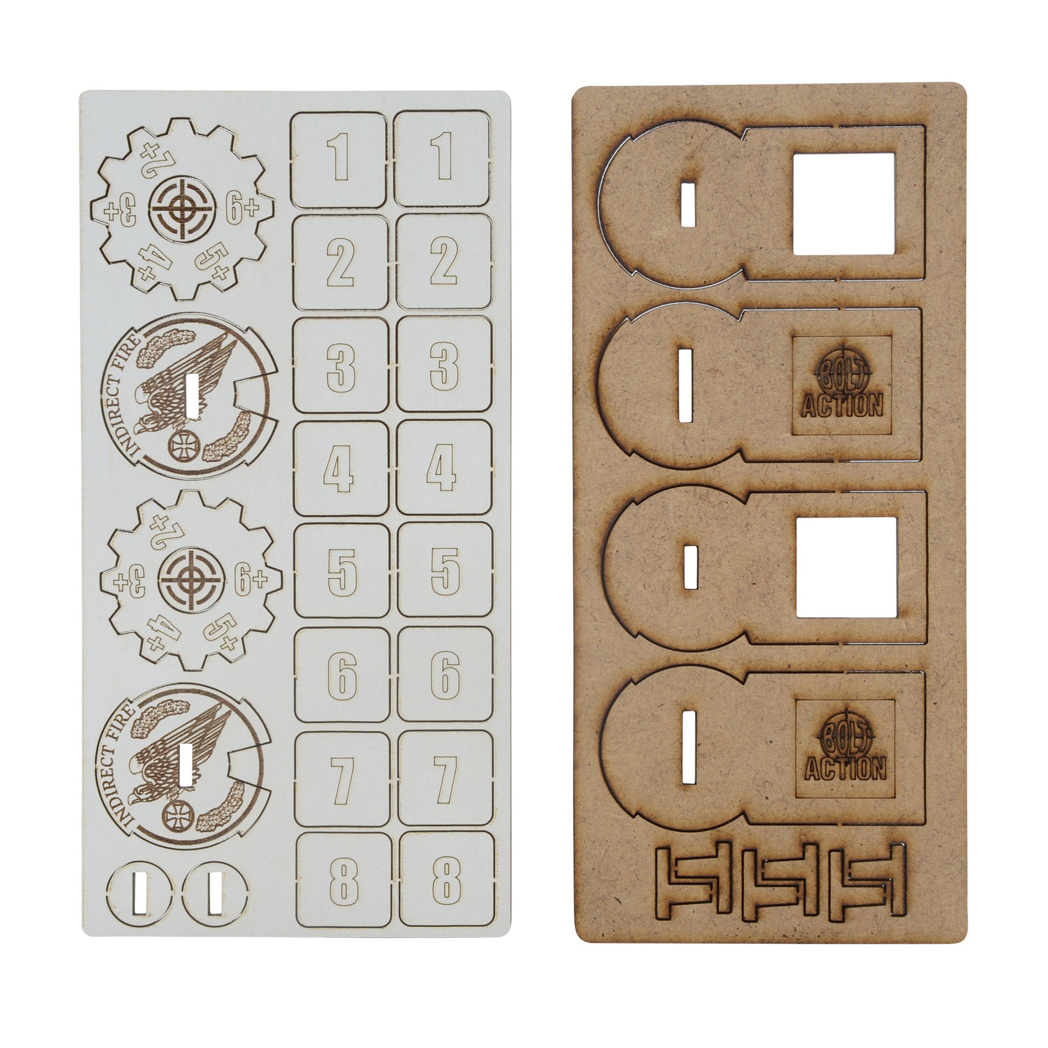 Made of high-quality laser-cut MDF and simple to assemble, these durable markers are an essential addition to every gaming bag! Pack contains two zeroing in markers.