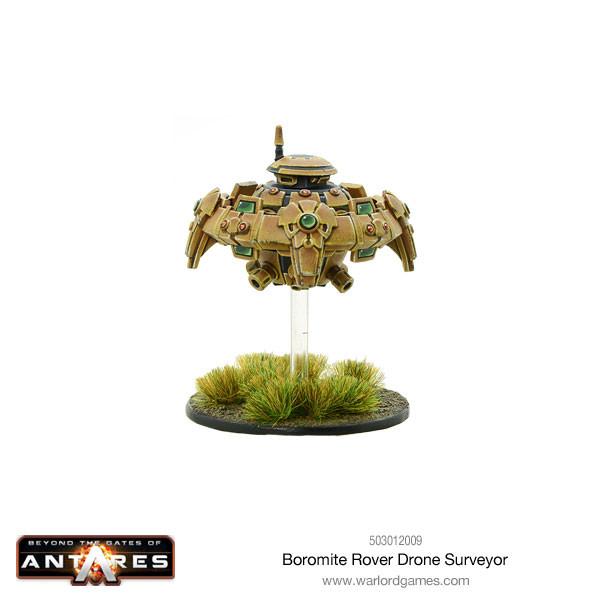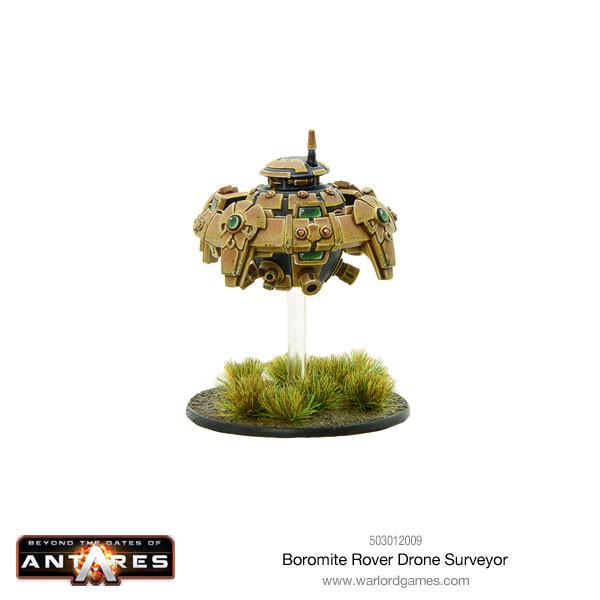 "The Boromite Rover is an automated exploration drone that is used for remote surveying and mineral sampling. It works in conjunction with Micromite buddy drones. Like much Boromite technology it is designed to operate independently of a nanosphere. Where there is a risk of contamination from the nanosphere or subversion by rivals it can operate as a closed unit. Perfect for the conditions experienced on Chryseis III.