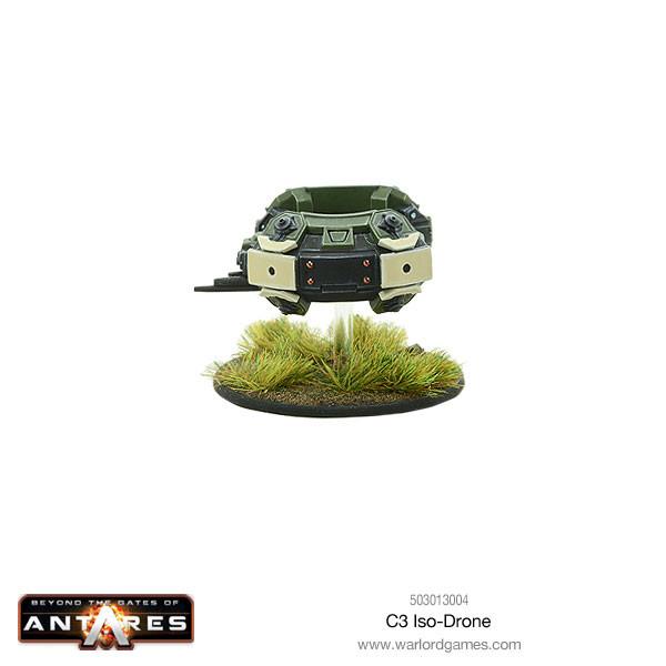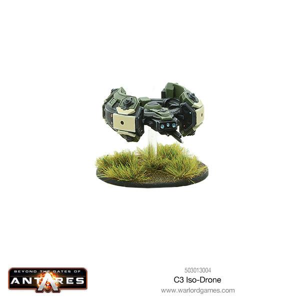 Iso-drones are heavily protected by kinetic armour as well as substantial nanocored casing. The isoshield creates immense gravitational resistance that makes it impossible for the drone to move very quickly. As a result, the iso-drone is a sluggish machine that moves only slowly."