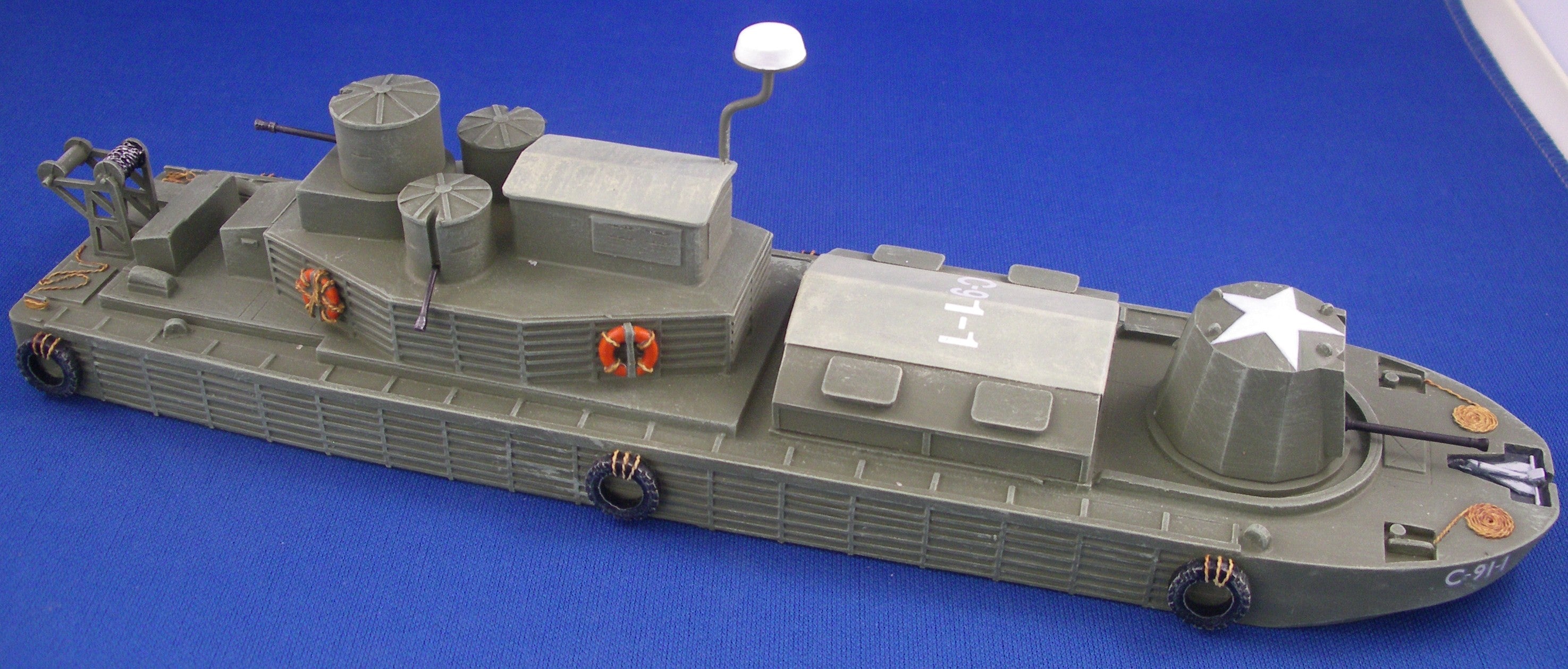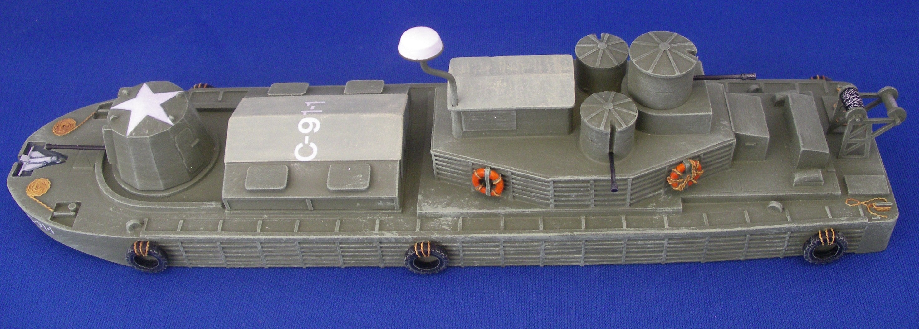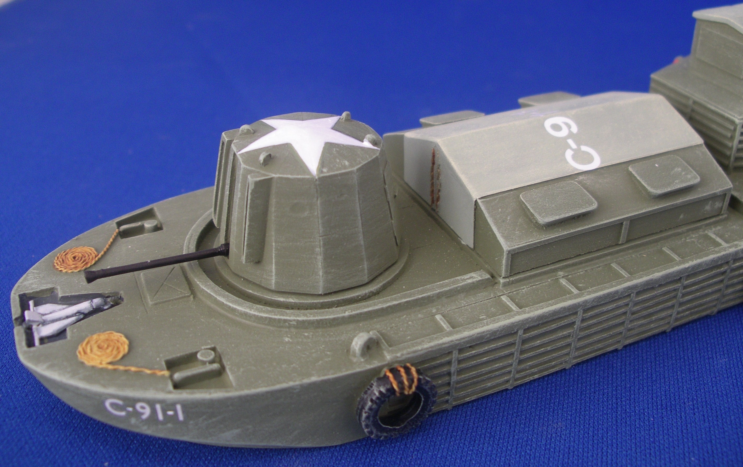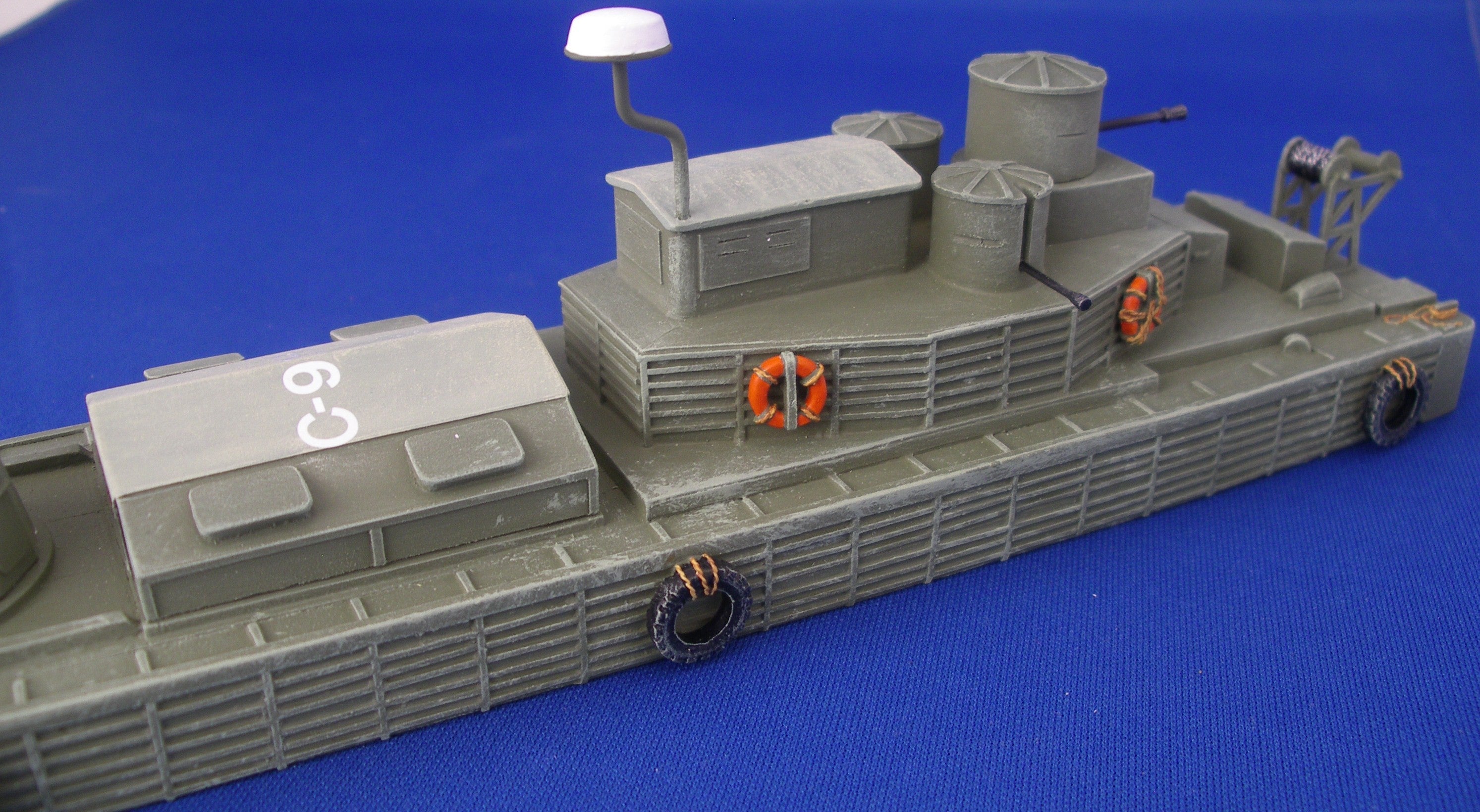 Resin hulls with resin and white metal fittings. With optional parts to make a CCB (Command & Control Boat) version. (as per pictures below)