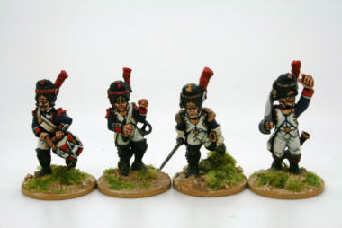 This blister pack contains four unpainted figures. the pack contains a drummer , flag bearer and selection of two of three versions of the officers. The gallery picture shows the officers available. These will be supplied as a random mix. If you require a particular pose, please message me, although this may delay dispatch of your order if casting is required. Painted examples of the figures are shown in the pictures. Bases and basing material is not included but can be purchased from my sho