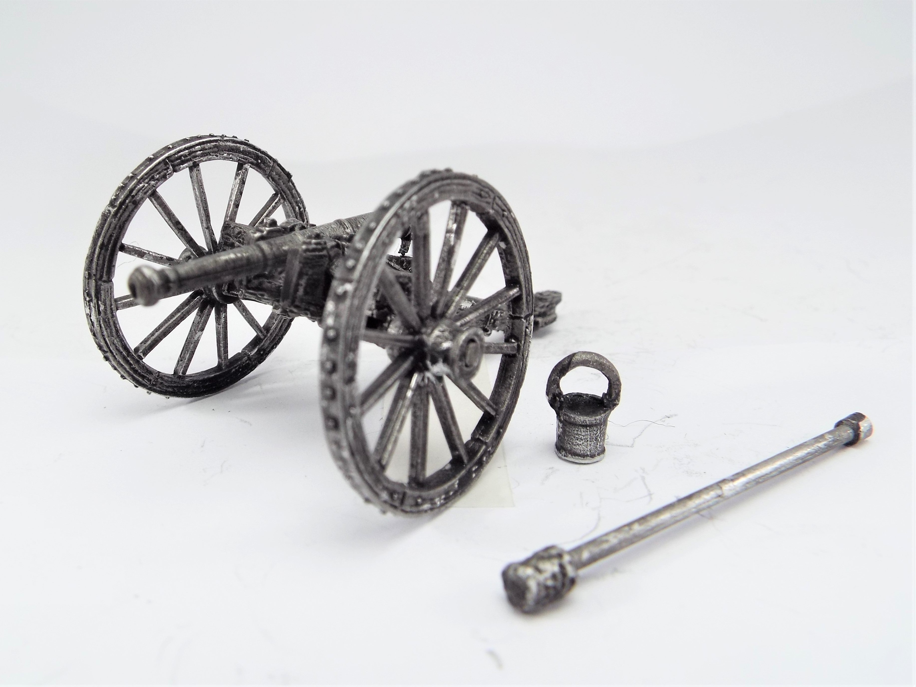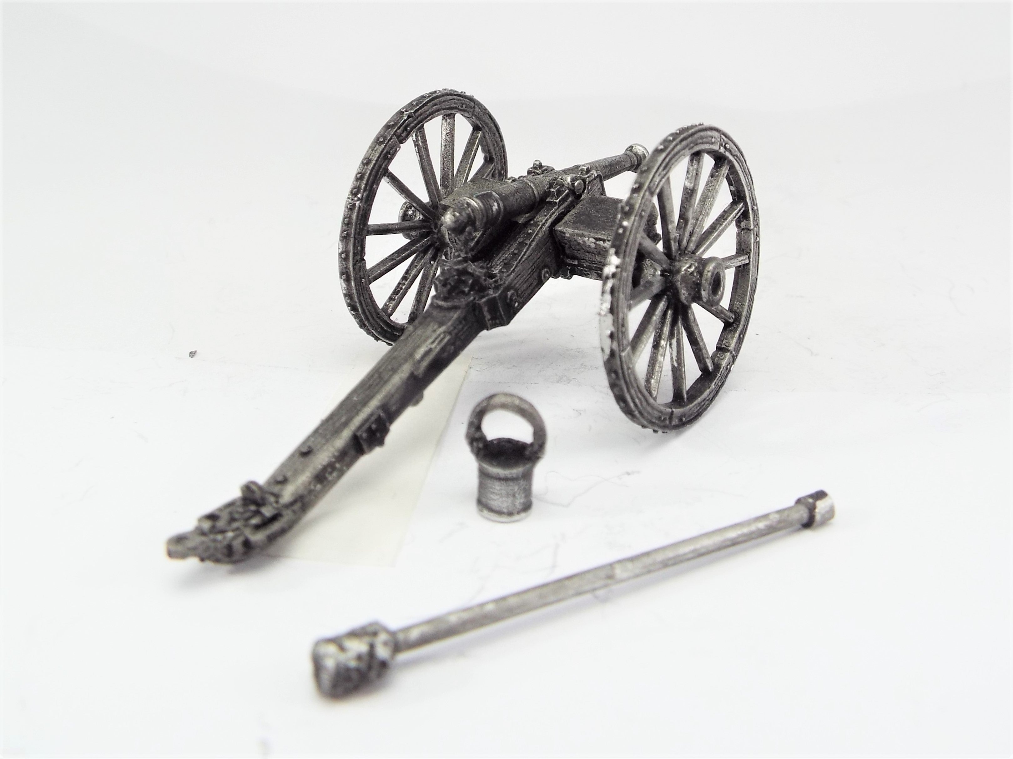 This blister pack contains the parts to make one cannon. You have a choice of making the Light 6pdr or long 3pdr on a congreve block trail carriage. Also included are 2 buckets and a ramrod. These guns were in British horse artillery batteries in the 1790’s. The light 6 pdr was used throughout the later Napoleonic wars