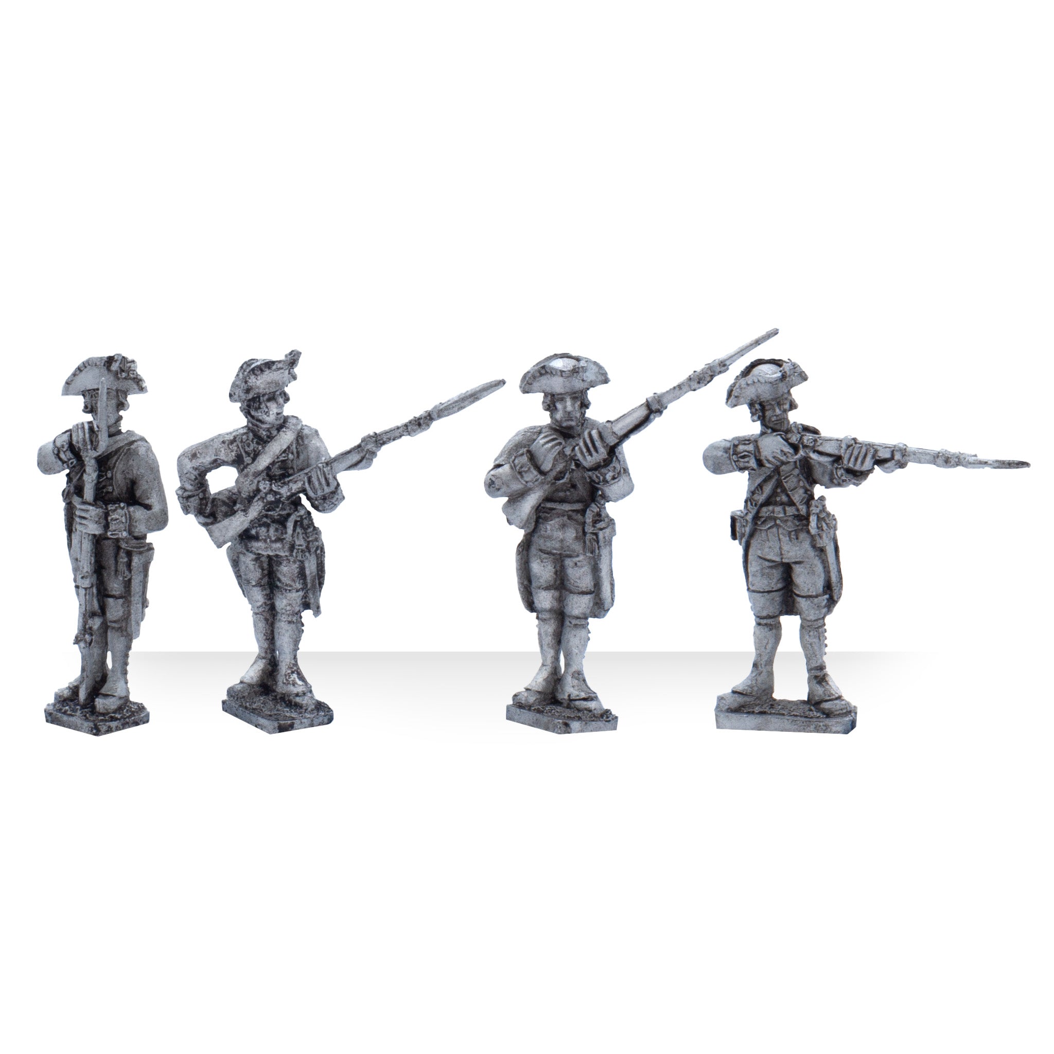 This pack is for a Regiment of x24 Revolutionary War - Swiss Guard Musketeers Firing Line models including a full Command Group.